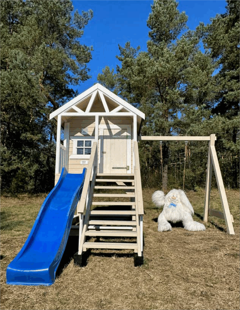 Superbe maisonnette en bois pour enfants actifs. Ils s’amuseront comme des fous en se balançant pour des heures de plaisir ou en dévalant le toboggan de 2 mètres de long à toute vitesse. Pour se rafraîchir, se détendre ou se mettre à l’abri de la pluie, cette spacieuse maisonnette est là pour vous.