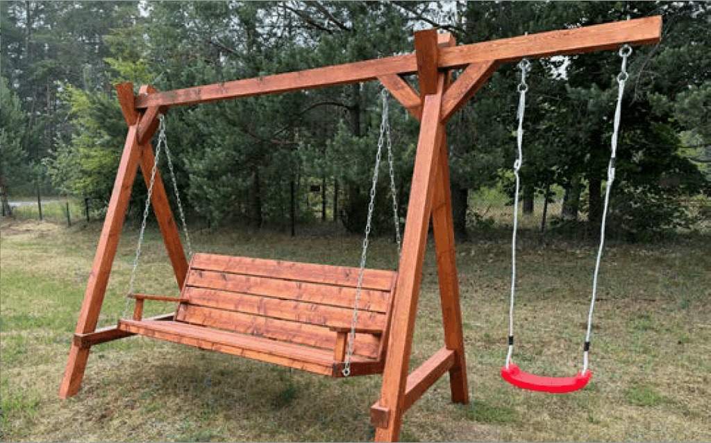 Portique en bois fabriquée à la main pour une détente en famille sur votre terrasse, votre jardin, votre véranda ou ailleurs. Fabriquée en bois massif, cette balancelle traditionnelle arbore un design intemporel. Ses matériaux durables lui garantissent une durabilité optimale, quelles que soient les tendances du jardin.