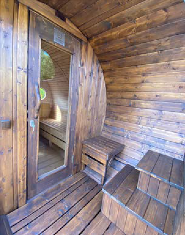 - Fenêtre panoramique à 50 % à l’arrière du sauna.
