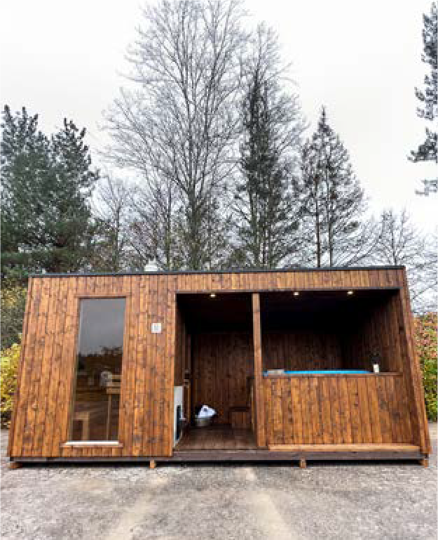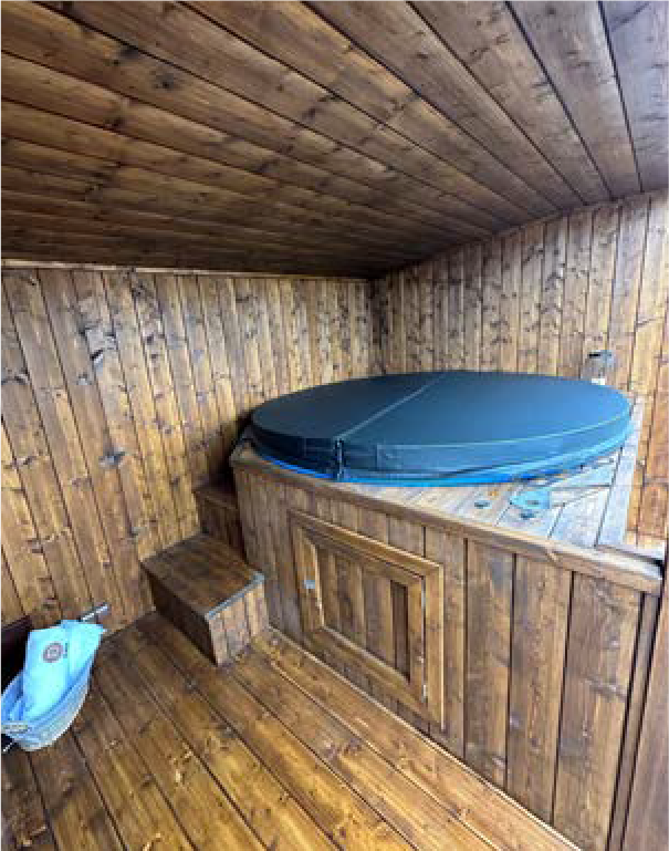 - Espace sauna sculpté en bois dur tendre ;