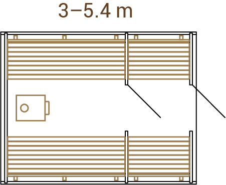 un choix idéal pour optimiser l’espace disponible. Outre le sauna et le vestiaire, une terrasse ouverte vous permettra de vous détendre et de profiter pleinement de l’expérience sauna.